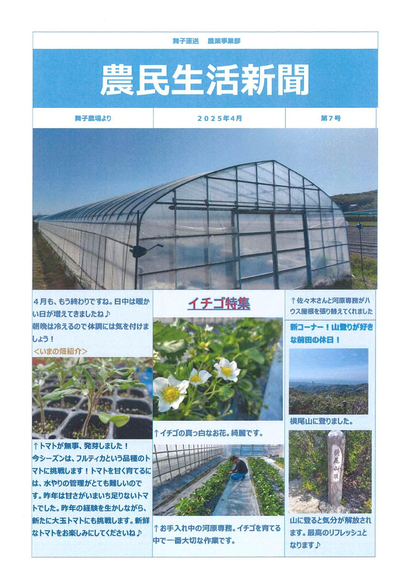 『農民生活新聞』第7号発刊されましたのでお知らせいたします(^^)