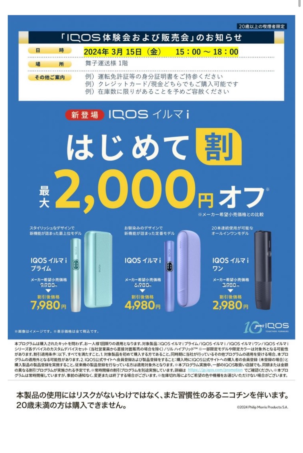 フリップモリスジャパン社による「IQOS体験会および販売会」を開催しました。